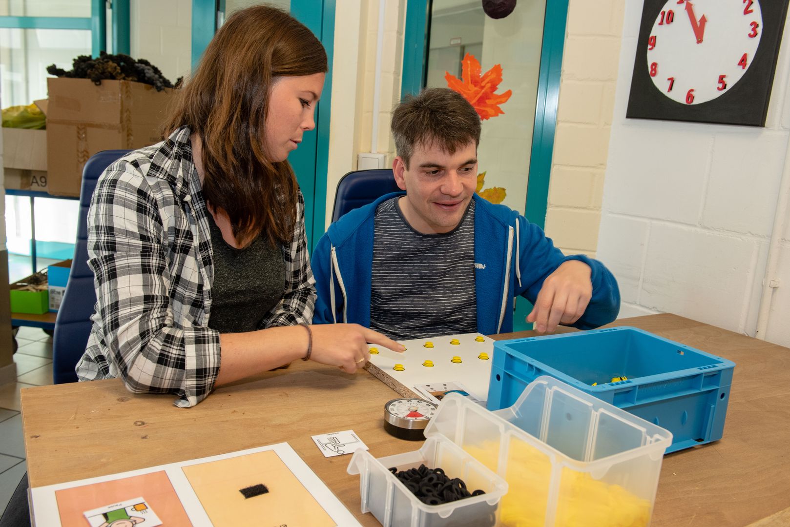 Zum Start in der Maudacher Werkstatt durchlaufen die Beschäftigten das Eingangsverfahren. Dieses dauert in der Regel drei Monate. In diesem Zeitraum können die Beschäftigten ihre Fähigkeiten erproben, die Werkstatt kennenlernen und herausfinden, ob es die geeignete Einrichtung für sie ist. Mit verschiedenen Testungen stellen wir fest, welche Fähigkeiten bereits vorhanden sind und wo individueller Förderbedarf besteht.