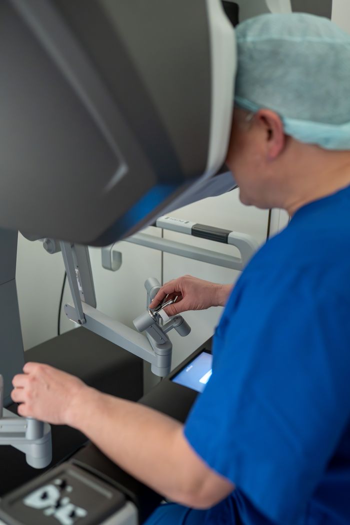 Das neu zertifizierte Speiseröhrenkrebszentrum im Diakonissen-Stiftungs-Krankenhaus Speyer ist Teil des Viszeralonkologischen Zentrums unter Leitung von Prof. Dr. med. Christian Klink. „Wir freuen uns sehr über die erfolgreiche Zertifizierung“, betont der Chefarzt der Allgemein- und Viszeralchirurgie im Haus. Das höchste externe Gütesiegel im Bereich der Krebsmedizin stelle hohe Anforderungen an die Quantität und Qualität der Behandlung. „Wir operieren sämtliche Eingriffe mit dem Roboter, sowohl im Bauch- als auch im Brustraum“, informiert der erfahrene Chirurg.